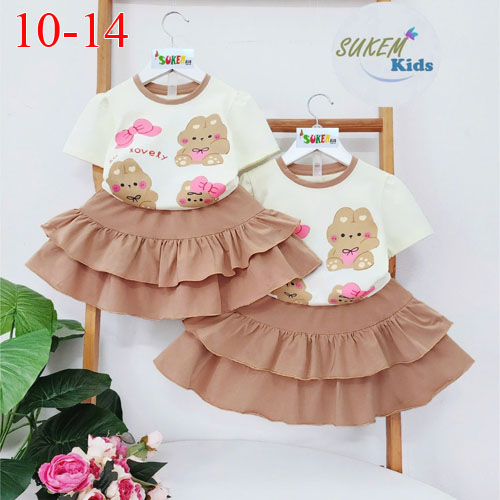 A489503 - Set ép thỏ cute áo ngắn tay với thiết kế chân váy may 2 tầng thun coton 4c_Size 10-14