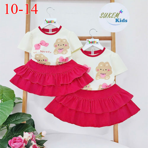 A489506 - Set ép thỏ cute áo ngắn tay với thiết kế chân váy may 2 tầng thun coton 4c_Size 10-14