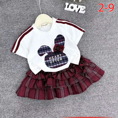 A489508 - Set bé gái áo thun in thỏ caro chữ HEART UTTER chân váy caro kèm chip trong_Size 2-9