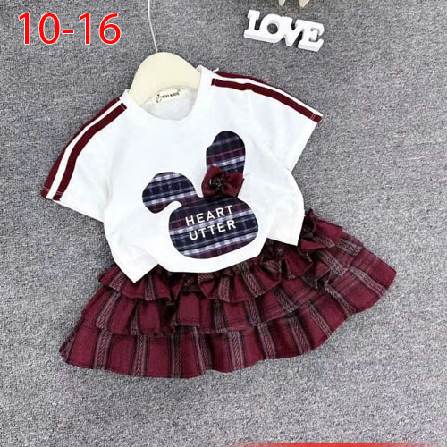 A489509 - Set bé gái áo thun in thỏ caro chữ HEART UTTER chân váy caro kèm chip trong_Size 10-16