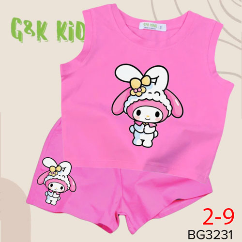 A489655 - Bộ quần đùi áo sát nách bé gái chất thun coton 4c in Melody_Size 2-9