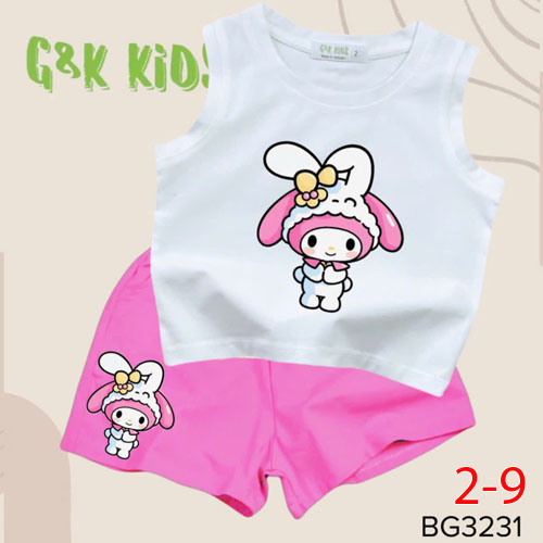 A489666 - Bộ quần đùi áo sát nách bé gái chất thun coton 4c in Melody_Size 2-9