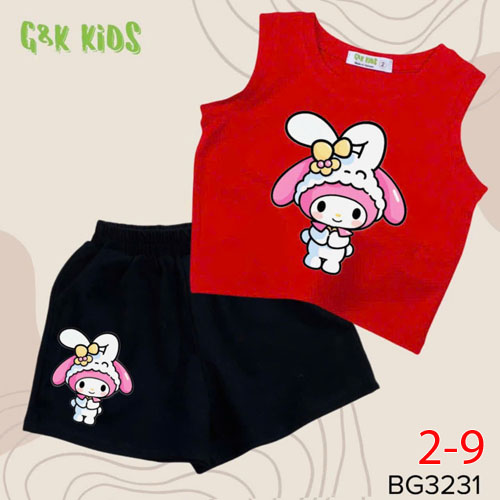 A489667 - Bộ quần đùi áo sát nách bé gái chất thun coton 4c in Melody_Size 2-9