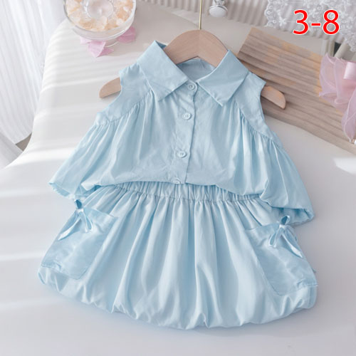A489691 - (2/2) Nexxi Set bé gái vải kate Hàn mềm mát áo dáng bí bo thun lai phối cùng váy bí (có ch