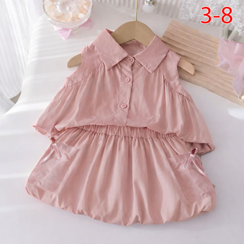 A489692 - (2/2) Nexxi Set bé gái vải kate Hàn mềm mát áo dáng bí bo thun lai phối cùng váy bí (có ch