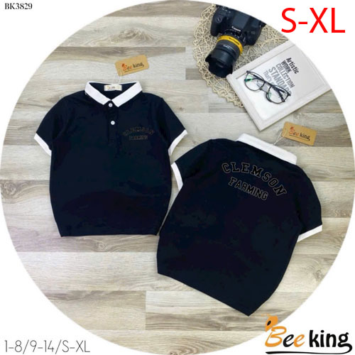 A489737 - Áo bé trai cổ trụ Clemson chất liệu cotton 4 chiều_Size S-XL
