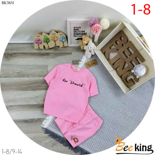 A489777 - Bộ bé gái lửng for should chất liệu cotton 4 chiều co giãn_Size 1-8