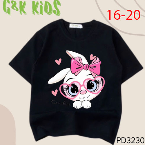 A490153 - Áo bé gái phom dài chất thun coton 4c in mèo đeo mắt kinh cute_Size 16-20