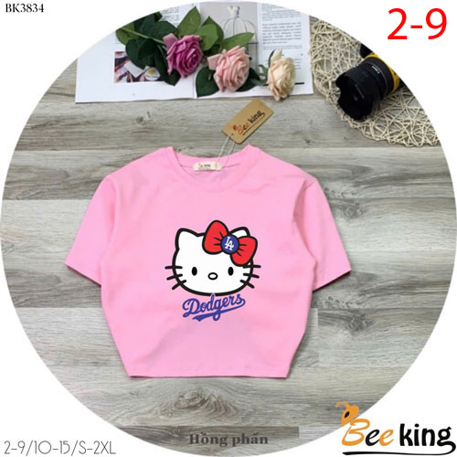 A490181 - Áo form lửng Hello Kitty cài nơ đỏ thun cotton 4c_Size 2-9