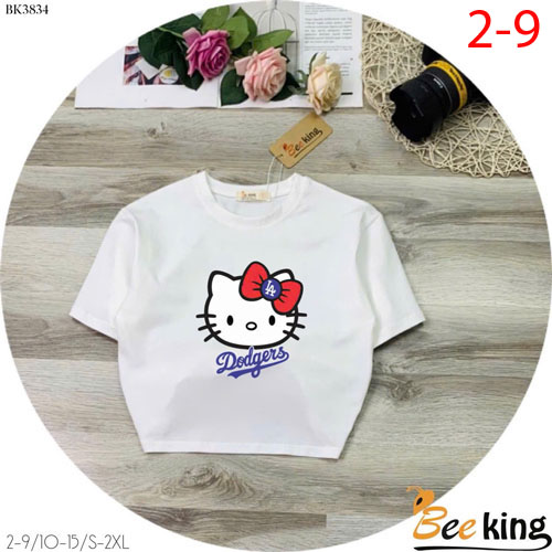 A490183 - Áo form lửng Hello Kitty cài nơ đỏ thun cotton 4c_Size 2-9