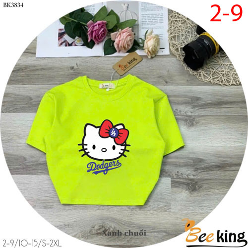A490184 - Áo form lửng Hello Kitty cài nơ đỏ thun cotton 4c_Size 2-9