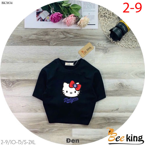 A490185 - Áo form lửng Hello Kitty cài nơ đỏ thun cotton 4c_Size 2-9