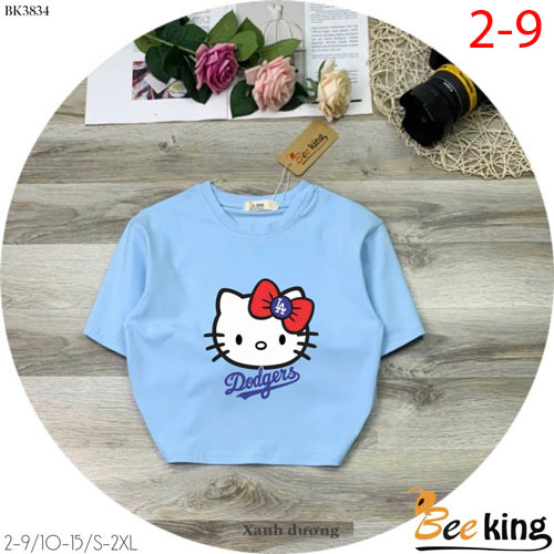 A490186 - Áo form lửng Hello Kitty cài nơ đỏ thun cotton 4c_Size 2-9