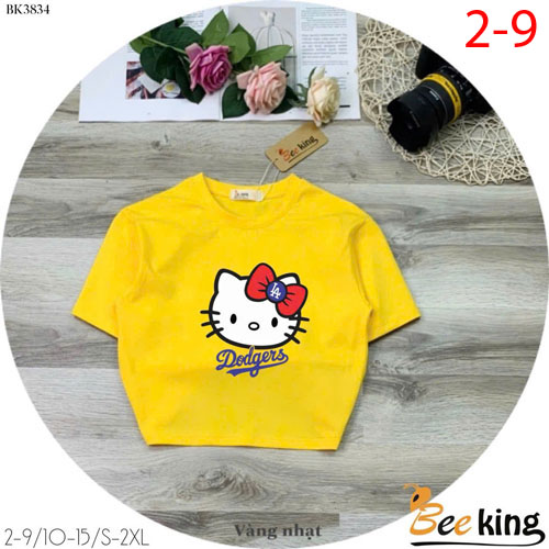 A490190 - Áo form lửng Hello Kitty cài nơ đỏ thun cotton 4c_Size 2-9