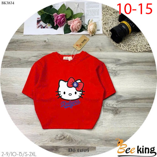 A490193 - Áo form lửng Hello Kitty cài nơ đỏ thun cotton 4c_Size 10-15