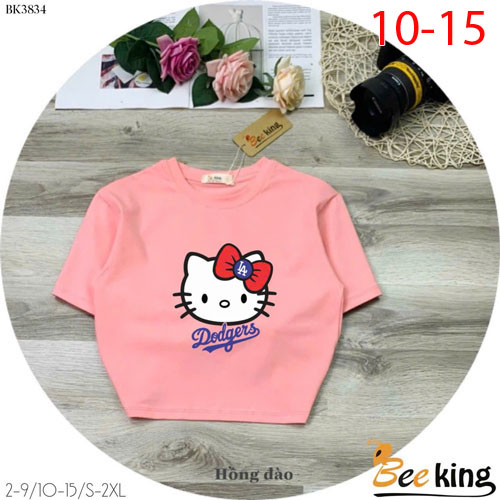 A490195 - Áo form lửng Hello Kitty cài nơ đỏ thun cotton 4c_Size 10-15