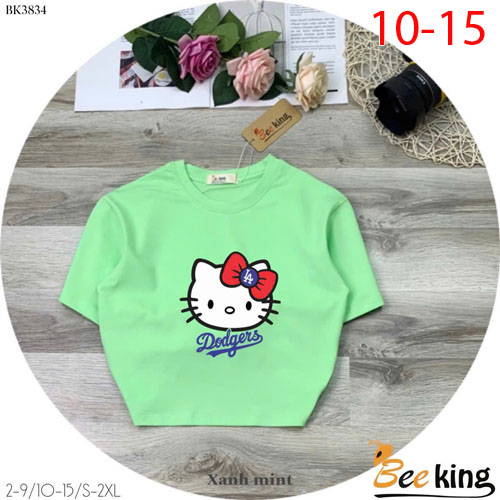 A490202 - Áo form lửng Hello Kitty cài nơ đỏ thun cotton 4c_Size 10-15