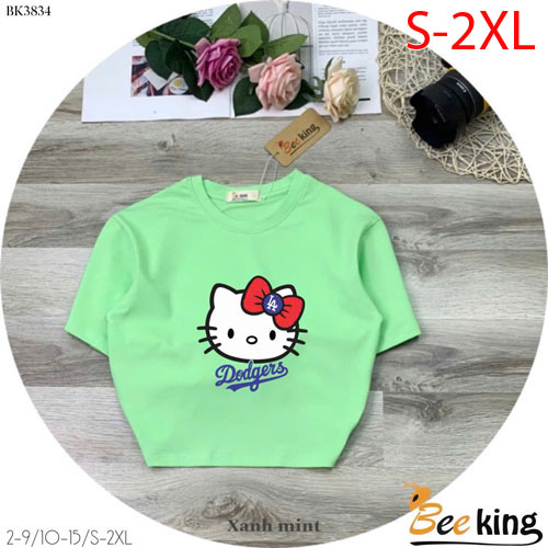 A490207 - Áo form lửng Hello Kitty cài nơ đỏ thun cotton 4c_Size S-2XL