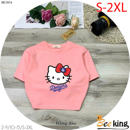 A490214 - Áo form lửng Hello Kitty cài nơ đỏ thun cotton 4c_Size S-2XL