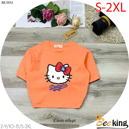 A490217 - Áo form lửng Hello Kitty cài nơ đỏ thun cotton 4c_Size S-2XL