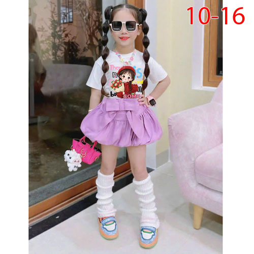 A490223 - Set bé gái áo thun cotton 4c in cô bé chân váy kaki bí kèm chip trong_Size 10-16