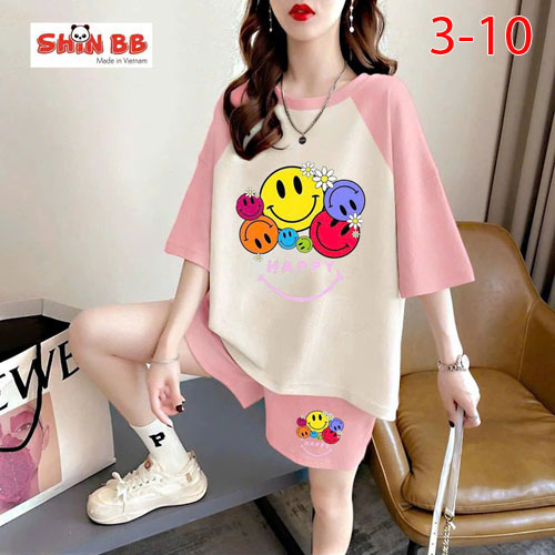 A490238 - Bộ đùi raplan dành cho mẹ bé cotton 4c mềm mịn hoạ tiết viền cổ, viền tay nổi bật in tổng