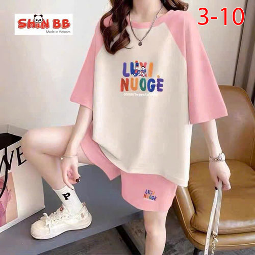 A490239 - Bộ đùi raplan dành cho mẹ bé cotton 4c mềm mịn hoạ tiết viền cổ, viền tay nổi bật in tổng