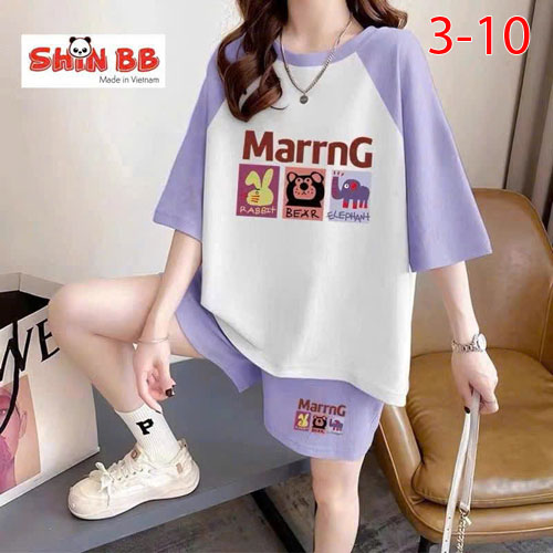 A490245 - Bộ đùi raplan dành cho mẹ bé cotton 4c mềm mịn hoạ tiết viền cổ, viền tay nổi bật in tổng