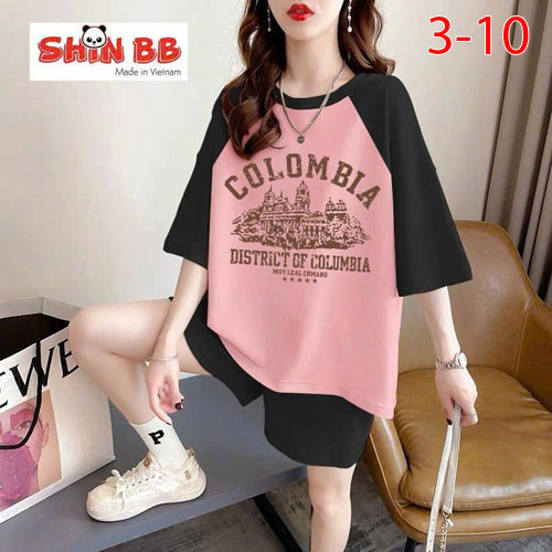 A490249 - Bộ đùi raplan dành cho mẹ bé cotton 4c mềm mịn hoạ tiết viền cổ, viền tay nổi bật in tổng