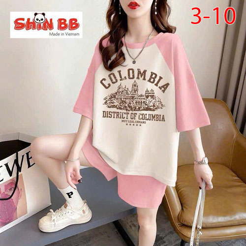 A490250 - Bộ đùi raplan dành cho mẹ bé cotton 4c mềm mịn hoạ tiết viền cổ, viền tay nổi bật in tổng