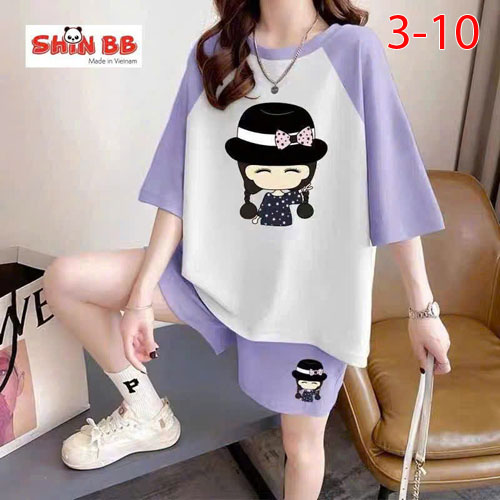 A490267 - Bộ đùi raplan dành cho mẹ bé cotton 4c mềm mịn hoạ tiết viền cổ, viền tay nổi bật in tổng