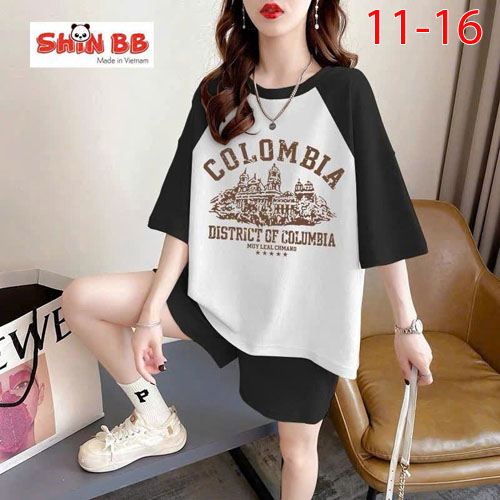 A490281 - Bộ đùi raplan dành cho mẹ bé cotton 4c mềm mịn hoạ tiết viền cổ, viền tay nổi bật in tổng