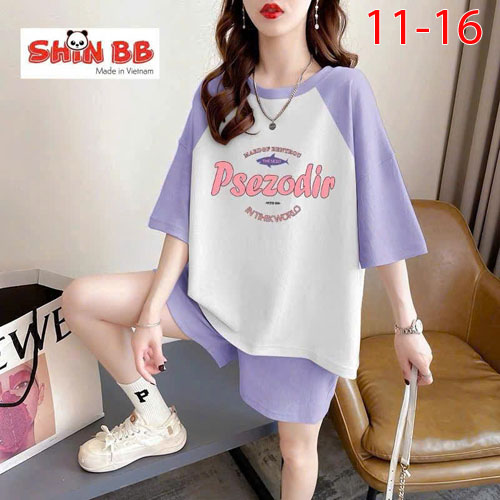 A490286 - Bộ đùi raplan dành cho mẹ bé cotton 4c mềm mịn hoạ tiết viền cổ, viền tay nổi bật in tổng