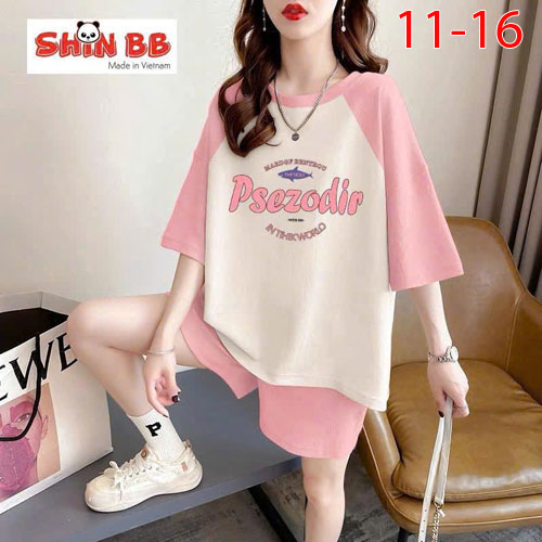A490288 - Bộ đùi raplan dành cho mẹ bé cotton 4c mềm mịn hoạ tiết viền cổ, viền tay nổi bật in tổng