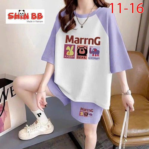 A490298 - Bộ đùi raplan dành cho mẹ bé cotton 4c mềm mịn hoạ tiết viền cổ, viền tay nổi bật in tổng