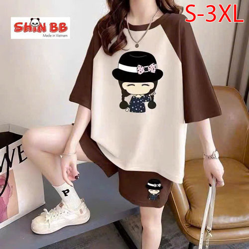 A490309 - Bộ đùi raplan dành cho mẹ bé cotton 4c mềm mịn hoạ tiết viền cổ, viền tay nổi bật in tổng