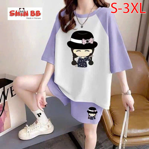 A490312 - Bộ đùi raplan dành cho mẹ bé cotton 4c mềm mịn hoạ tiết viền cổ, viền tay nổi bật in tổng
