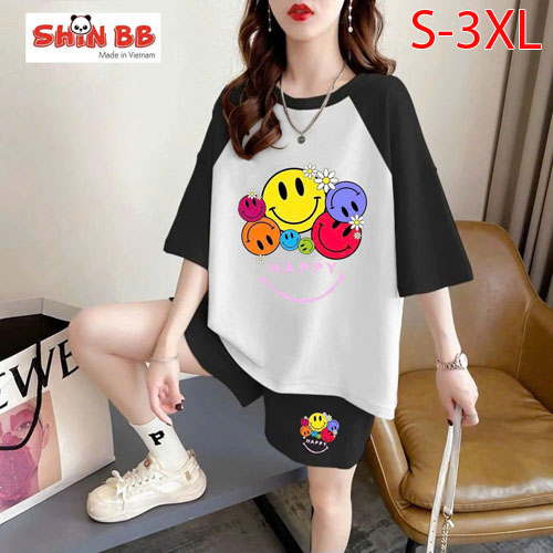 A490315 - Bộ đùi raplan dành cho mẹ bé cotton 4c mềm mịn hoạ tiết viền cổ, viền tay nổi bật in tổng