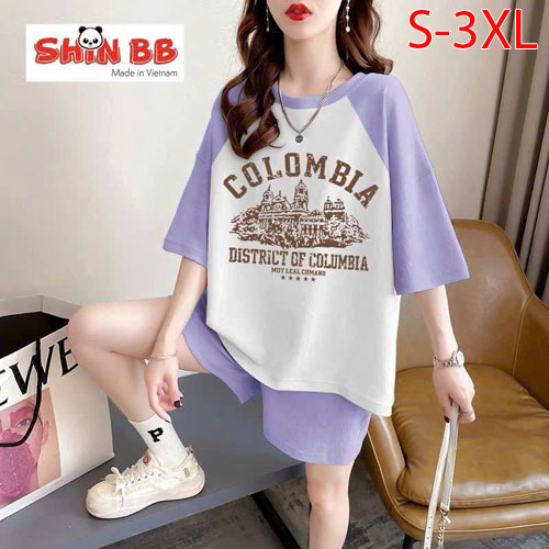 A490319 - Bộ đùi raplan dành cho mẹ bé cotton 4c mềm mịn hoạ tiết viền cổ, viền tay nổi bật in tổng