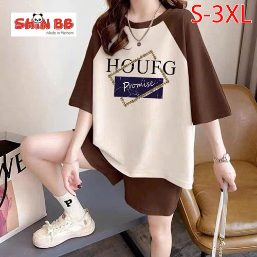 A490325 - Bộ đùi raplan dành cho mẹ bé cotton 4c mềm mịn hoạ tiết viền cổ, viền tay nổi bật in tổng