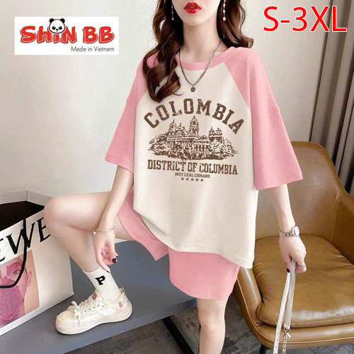 A490329 - Bộ đùi raplan dành cho mẹ bé cotton 4c mềm mịn hoạ tiết viền cổ, viền tay nổi bật in tổng