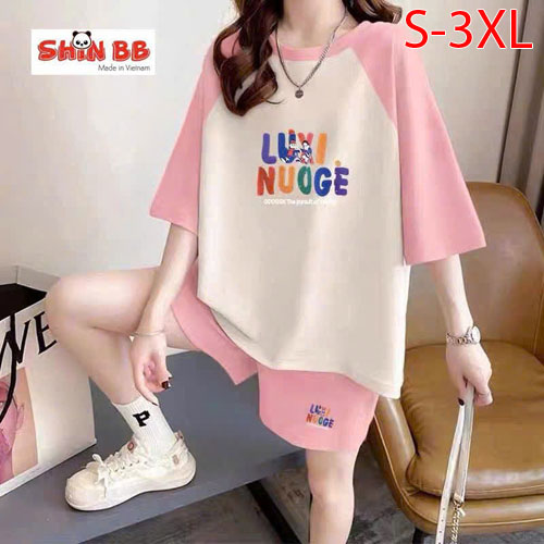 A490340 - Bộ đùi raplan dành cho mẹ bé cotton 4c mềm mịn hoạ tiết viền cổ, viền tay nổi bật in tổng