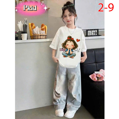 A490449 - Sét rin siêu phẫm cho bé áo chất thun cotton mềm mịn in cô bé quần rin dài lưng thun_Size