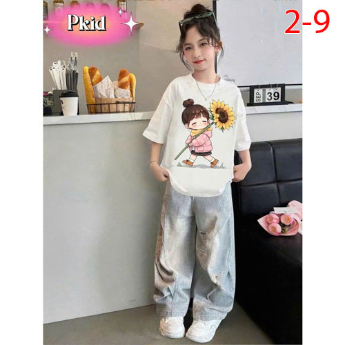 A490453 - Sét rin siêu phẫm cho bé áo chất thun cotton mềm mịn in cô bé quần rin dài lưng thun_Size