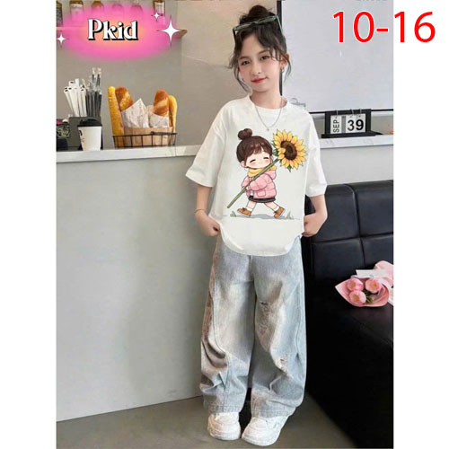 A490454 - Sét rin siêu phẫm cho bé áo chất thun cotton mềm mịn in cô bé quần rin dài lưng thun_Size