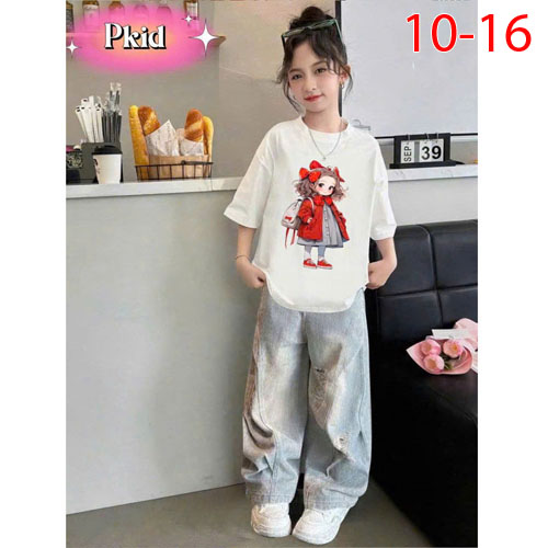 A490461 - Sét rin siêu phẫm cho bé áo chất thun cotton mềm mịn in cô bé quần rin dài lưng thun_Size
