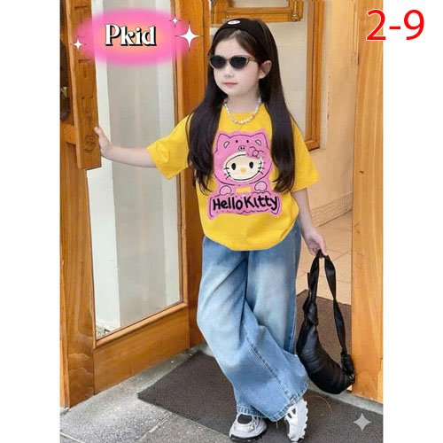 A490474 - Sét rin siêu phẫm cho bé áo chất thun cotton mềm mịn in cô bé kitty quần rin dài lưng thun