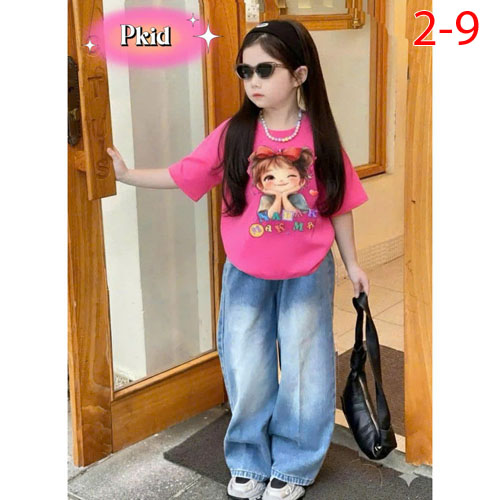 A490476 - Sét rin siêu phẫm cho bé áo chất thun cotton mềm mịn in cô bé kitty quần rin dài lưng thun