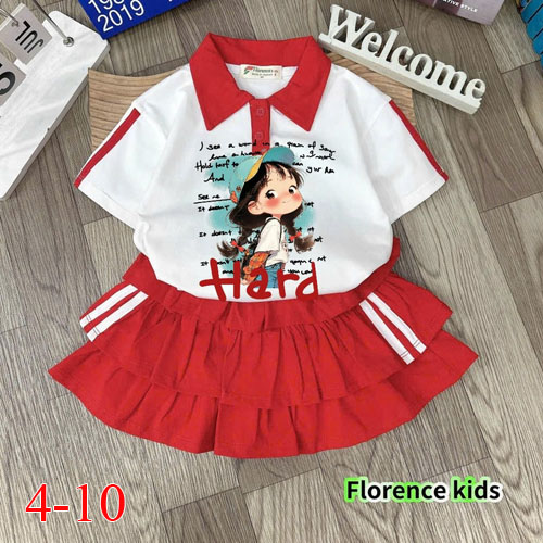A490512 - Set váy cực xinh cho bé thun coton 4 chiều mềm mại, phối lai ren in cô bé chân váy 3 tầng
