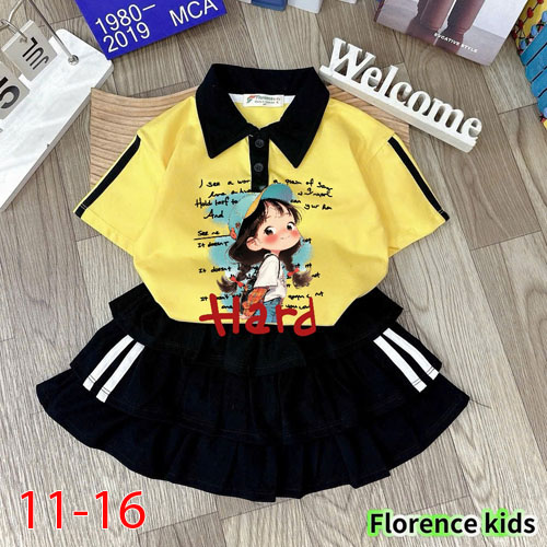A490516 - Set váy cực xinh cho bé thun coton 4 chiều mềm mại, phối lai ren in cô bé chân váy 3 tầng